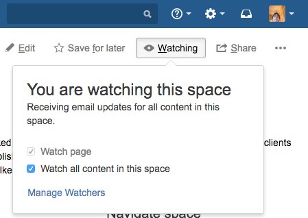 I always recommend that users click the eye on Confluence pages of interest. Confluence enables you to watch a page, blog, or all of the contents in the space and notifies you when changes and updates appear.