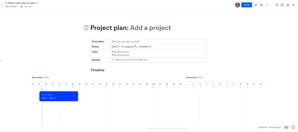 I’ve been a fan of Dropbox Paper and minimalist word processors for a while now. In fact, I use Dropbox Paper for many of my personal writing projects. Recently, the Paper team added a Project Plan as a document option.